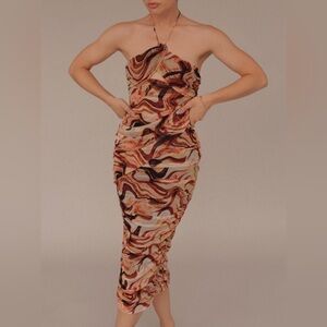 En Saison Esther Ruched Halter Neck Cutout Midi Dress