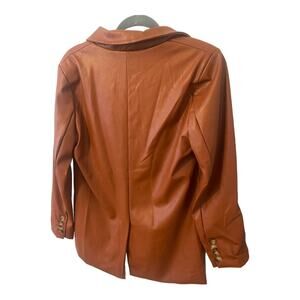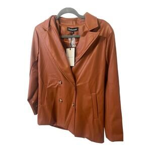 En Saison Faux Leather Oversized Blazer Jacket Double Breasted Rust Brown Small