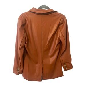 En Saison Faux Leather Oversized Blazer Jacket Double Breasted Rust Brown Small