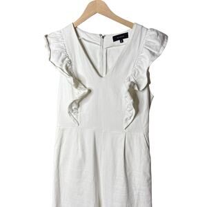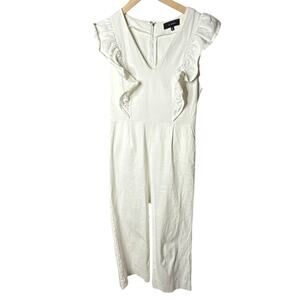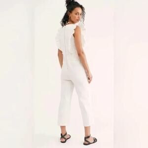 En Saison Free People Ruffled Jumpsuit Pleated Tapered Leg V Neck White Small