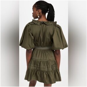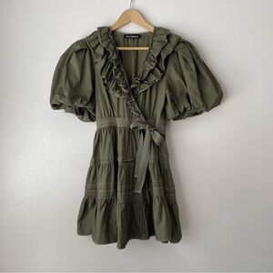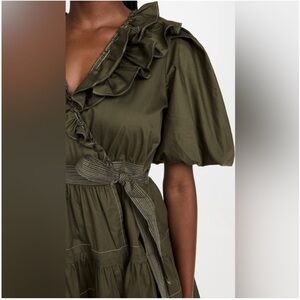Revolve En Saison Gianna Ruffle Mini Wrap Dress Olive Green Cotton XS