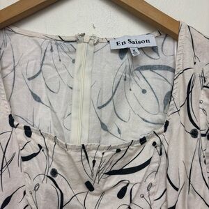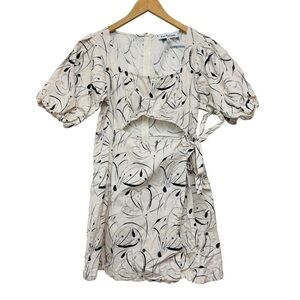 Adorable En Saison Puff Sleeve Dress. Cutout front. Cross over skirt with tie. Square neck. Zipper back.