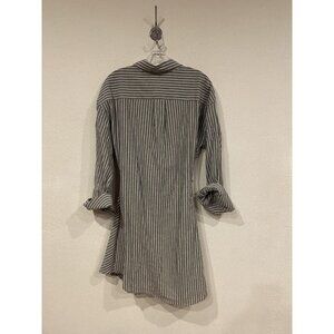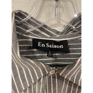 En Saison JJ Shirt Dress Womens Large Gray White Striped Wrap Tie Waist Collared