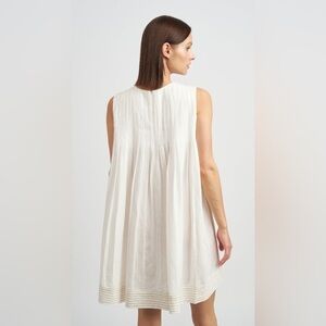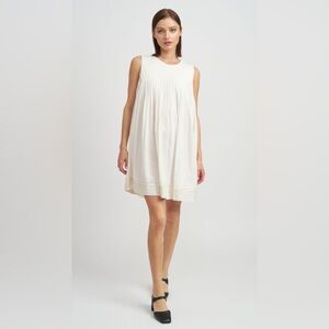 En Saison Jesse Pleated Swing Mini Linen Babydoll Dress Size Medium Off White
