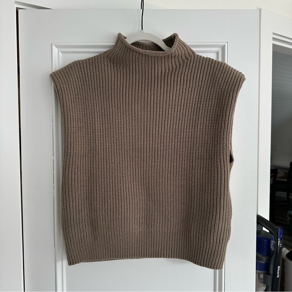 En Saison Kanika Knit Top, cap sleeve style with mock neck. Only worn twice. Size medium, pretty taupe color