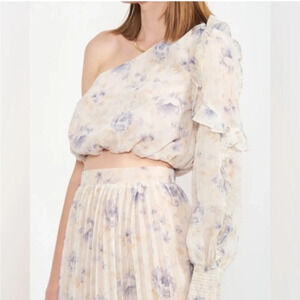 En Saison Kika blue floral one shoulder top