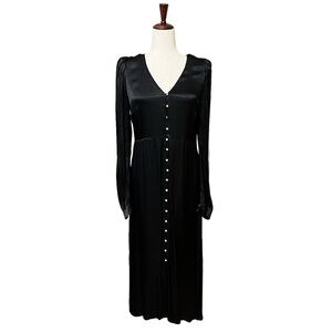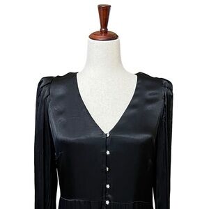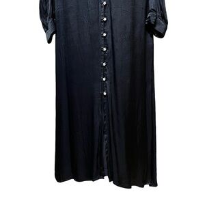 En Saison Lizette Satin Flower Button Down Puff Sleeve Dress. Black M #783 NWOT