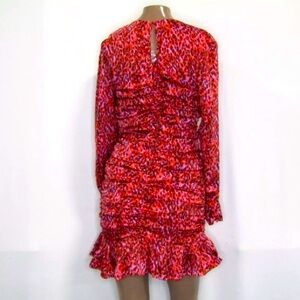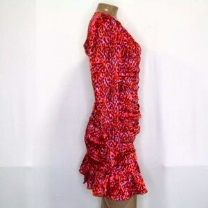 En Saison Mini Dress Red/Multi Women’s Size S Razzalind Bodycon Ruched V-Neck NWT