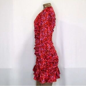 En Saison Mini Dress Red/Multi Women’s Small Razzalind Bodycon Ruched V-Neck NWT
