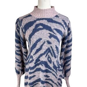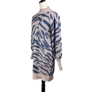 En Saison NWT Mares Wool Beige Navy Blue Animal Print Rib Knit Sweater Dress