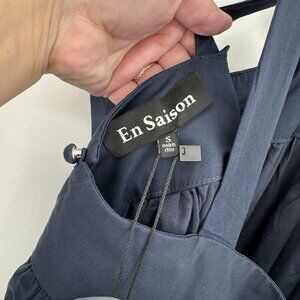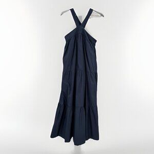 En Saison Navy Blue Cotton Tiered Halter Midi Dress size S Small NWT