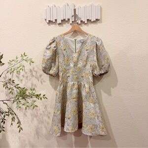 En Saison Norah Jacquard Mini Dress in Sage Lemon Size Small NWT