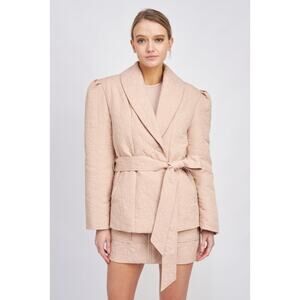 En Saison Peony Journee Jacket Pink Floral Embossed Jacket Coat Tie Waist Size S