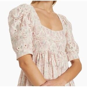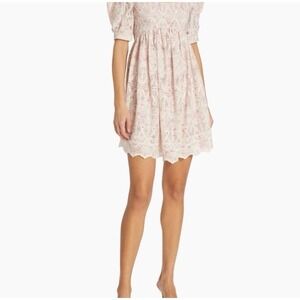 En Saison Pink Eyelet Embroidered Empire Waist Mini Dress Small NWOT