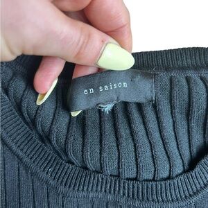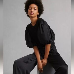 En Saison Puff Sleeve Sweater Top Black Ribbed Anthropologie Size Small EUC
