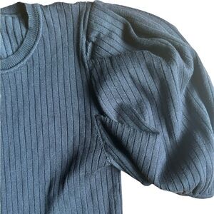 Minimalist puff sleeve ribbed design. Perfect to dress up jeans or a casual pant. Perfect for any season. Stock photo is of a slightly different design.