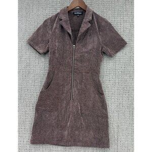 En Saison Route Mini Dress Womens Short Sleeve XS Brown Pockets Front Zip