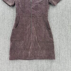 En Saison Route Mini Dress Womens Short Sleeve XS Brown Pockets Front Zipper Closer.