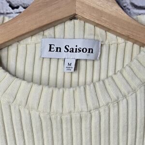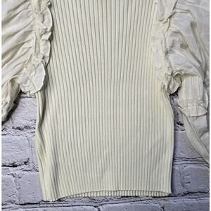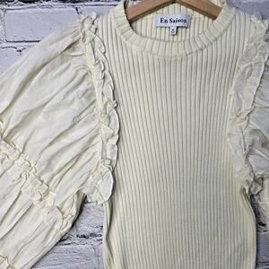 En Saison Scandi Girl Balloon Sleeve Ribbed Knit Top Crew Neck Size Medium