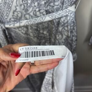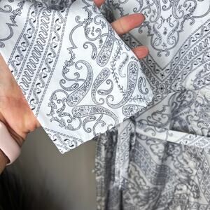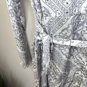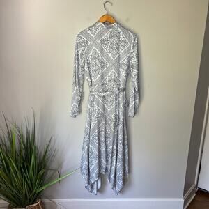 En Saison Scarf-Print Button-Front Midi Dress Small Satiny Long Sleeves Belted