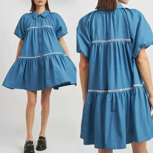 En Saison Tara Tiered Cotton Trapeez Shirtdress