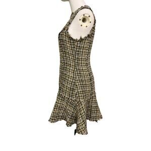 En Saison Tweed Sleeveless Dress Size S Raw Edge Flounce Hem Olive NWT