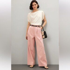 En Saison Valeria Linen Pink Wide Leg Trousers Pants Pockets Career Trouser