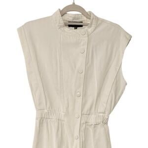 En Saison White Denim Asymmetrical Anthropologie Utility Cropped Jumpsuit XS