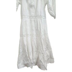 En Saison White Eyelet Midi Dress XS Boho Lace Peasant Summer Cottagecore Flowy