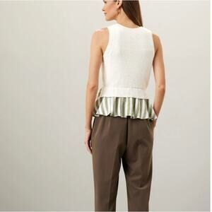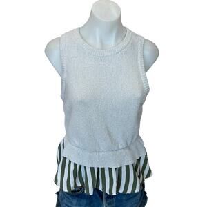 En Saison White Knit Peplum Top LARGE Sleeveless Coastal Preppy Designer $109