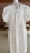 This dress has a round neckline with short puff sleeves and a double tie closure, adding a touch of elegance to its solid white color.