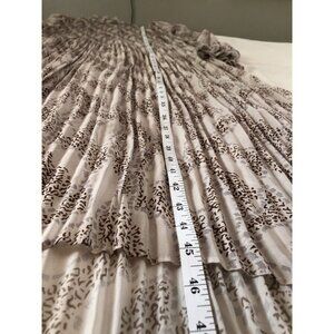 En Saison Women Pleated Sheer Maxi Dress M Beige Keyhole Back Slit Sleeve Hi-Low Ruffles