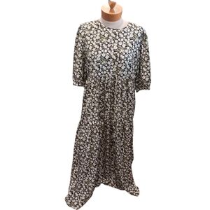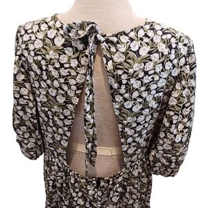 En Saison Womens Floral Dress Green White Open Back Maxi Size XL Spring Summer