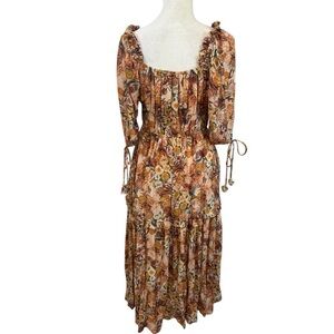 En Saison Women's Medium Candela Floral Square-Neck Ruffle-Tier Midi Dress NWT