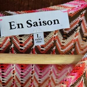 En Saison dress, chevron dress, multicolor midi dress, women's casual dress, summer dress, polyester dress, sleeveless dress, drawstring waist, women's size L, boho style dress