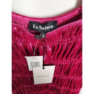 En Saison Women's Sz. L Fushia Ruched Velvet Mini Dress NWT
