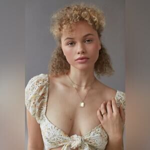 En Saison Yellow Floral Eyelet Mini Dress Puff Sleeve tie Open Front Women’s M