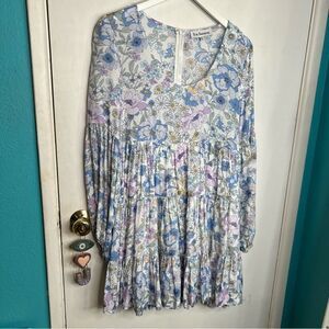 En Saison babydoll Floral Long-Sleeve Tiered Mini Dress