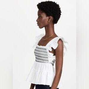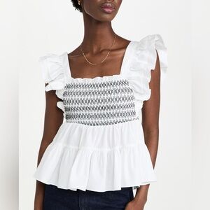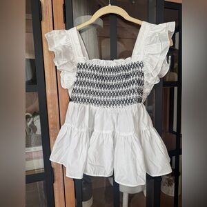 En Saison smocked shay top ruffles tiered flutter poplin square neck babydoll