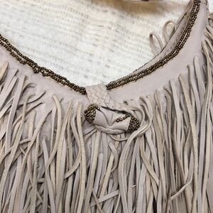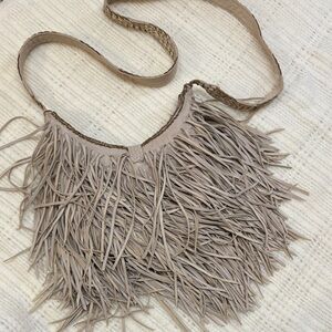 En Shalla Leather Chic Fringe Crossbody Bag in Tan