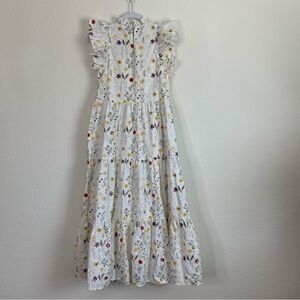 En saison Womens Eliza white floral flutter sleeve tiered lined midi dress S