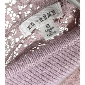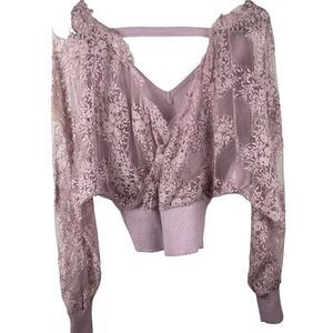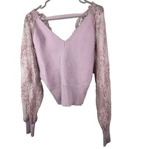 En Creme Lavender Cropped V-Neck Sexy Sweater w/ Long Lace Sleeves and Back Sz S