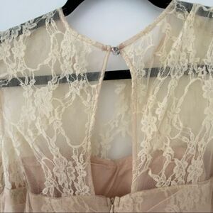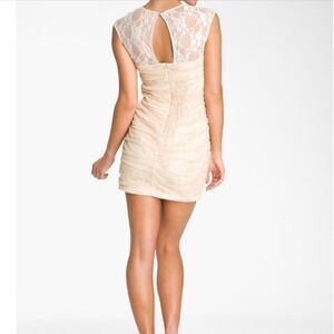 En Creme Lace Overlay Rouched Mini Dress NWT