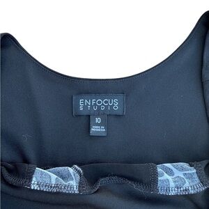 Step out in effortless style with this striking En Focus Studio sleeveless dress in size 10. Featuring an elegant black base adorned with bold white giraffe-inspired print panels, this flattering A-line dress is designed to elongate your silhouette while offering all-day comfort. The soft, stretchy fabric blend (95% polyester, 5% spandex) and the easy pull-on style make it perfect for summer parties, the office, or a casual weekend out. Pair it with heels for a chic evening look or layer with a cardigan for work-ready style. Machine washable for easy care.