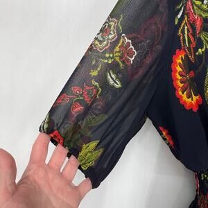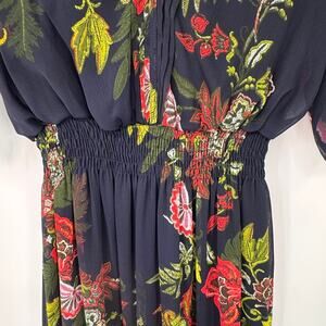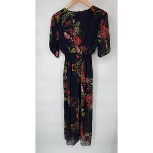 EnFocus Studio Boho Maxi Dress Womens 6 Navy Blue Chiffon Floral Print Polyester