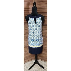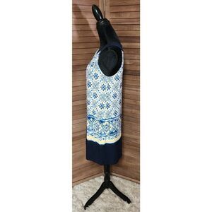 En Focus Studio Womens Blue Medallion Print Sleeveless Halter Shift Dress Size 8