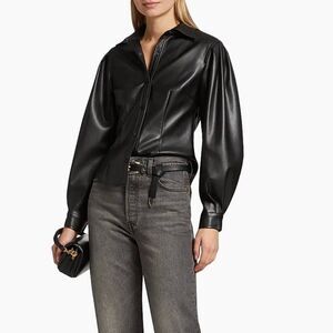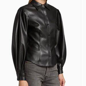 En Saison Dawn Faux Black Leather Snap Front Shirt NWT