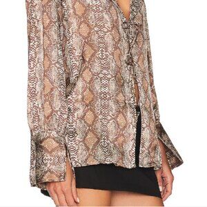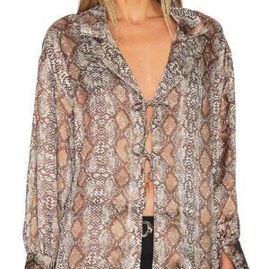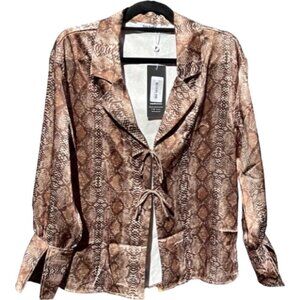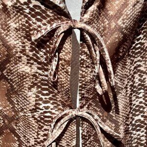 Ena Pelly Cuffed Long Sleeve Front Tie Shirt Women's Snake Skin Brown Size 6/8