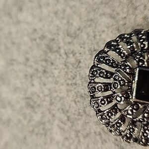 Enamel & Antiqued Silverstone 1 3/8"Dia. Brooch. This was an estate find, so I have no idea of age. It is in good condition.
