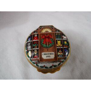 Enamel Box, Halcyon Days, Christmas 1991, Snuff Box, Pill Box, Jewelry box,